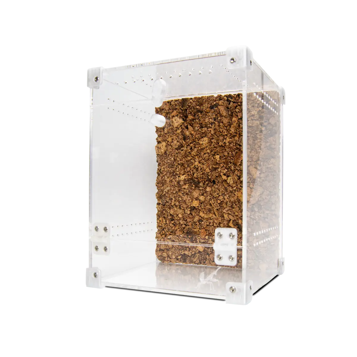 BugBox Midi (20 × 15 × 15 cm) er vores mellemstørrelse terrarie – lavet til at stå på højkant.