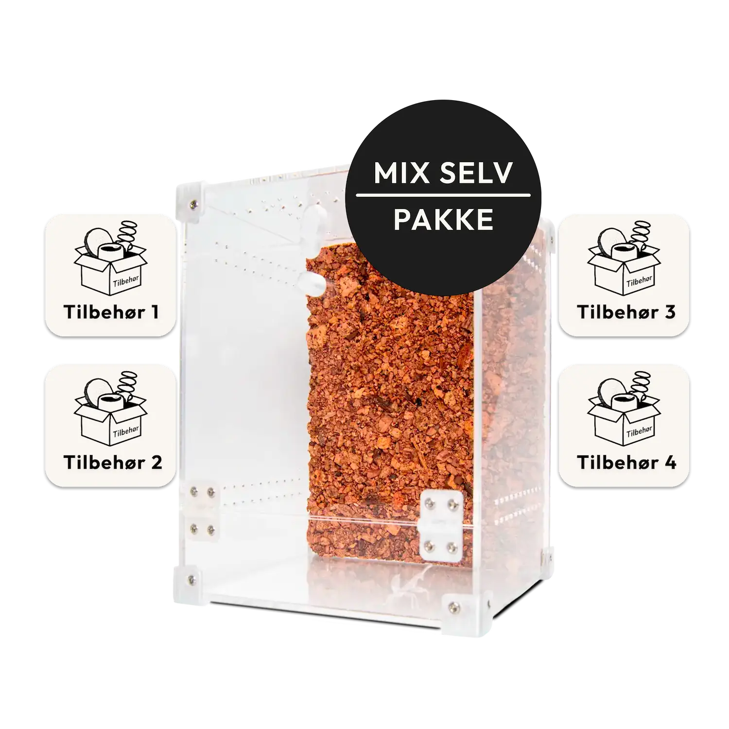 Her kan du bygge din egen terrariepakke med BugBox Midi og 4 tilbehørsdele efter eget valg.